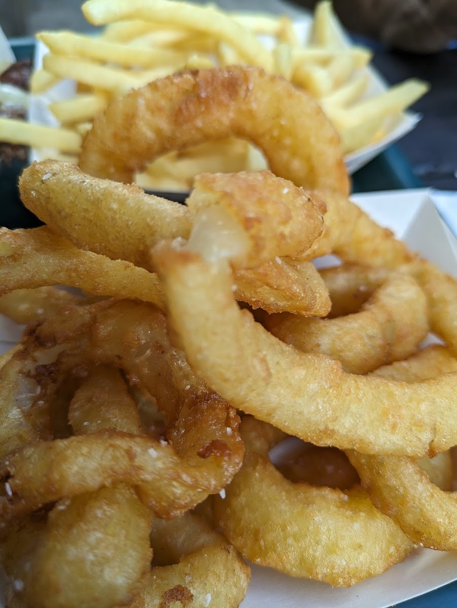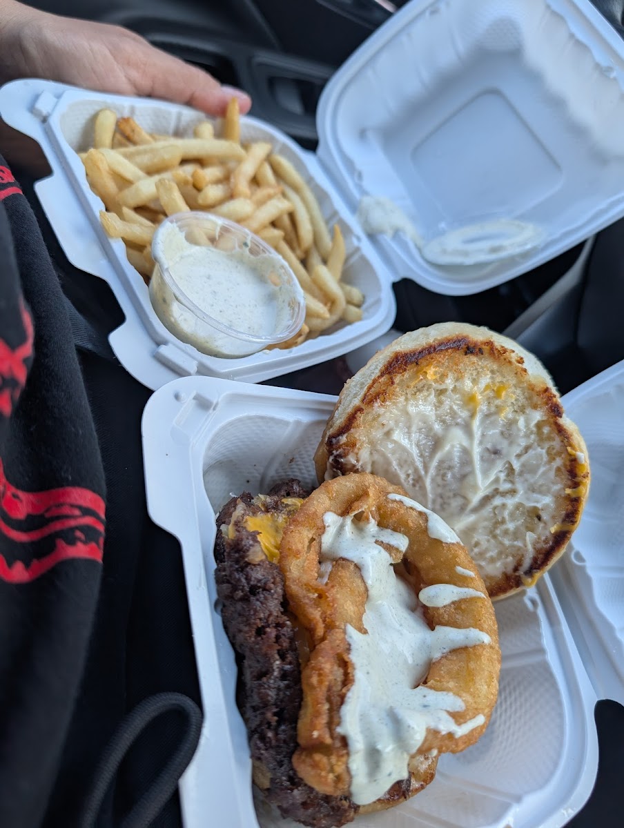 Menu highlights include the signature OG Dirty Flat Top Cheeseburger, which has earned a fan base for its crispy bun and juicy, flavorful patty. The fries and particularly the onion rings get solid mentions from visitors who often throw an onion ring inside their burger for an extra layer of texture. There’s also a diverse beer selection featuring local and craft options like Hamm’s and Two Hearted Ale, making it a good stop for pairing a cold drink with a hearty bite.