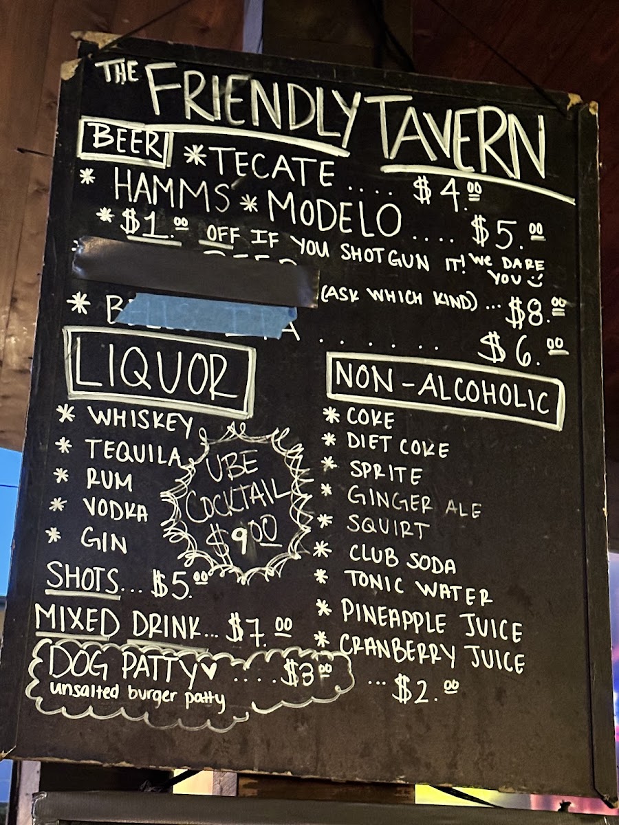 In addition to food items, the menu includes a selection of alcoholic beverages, with whiskey, tequila, mixed drinks, and a range of craft and local beers such as Hamm’S Beer and Two Hearted Ale. Non-alcoholic drinks are also offered, including ginger ale, club soda, tonic water, and pineapple juice, allowing for a range of drink choices.