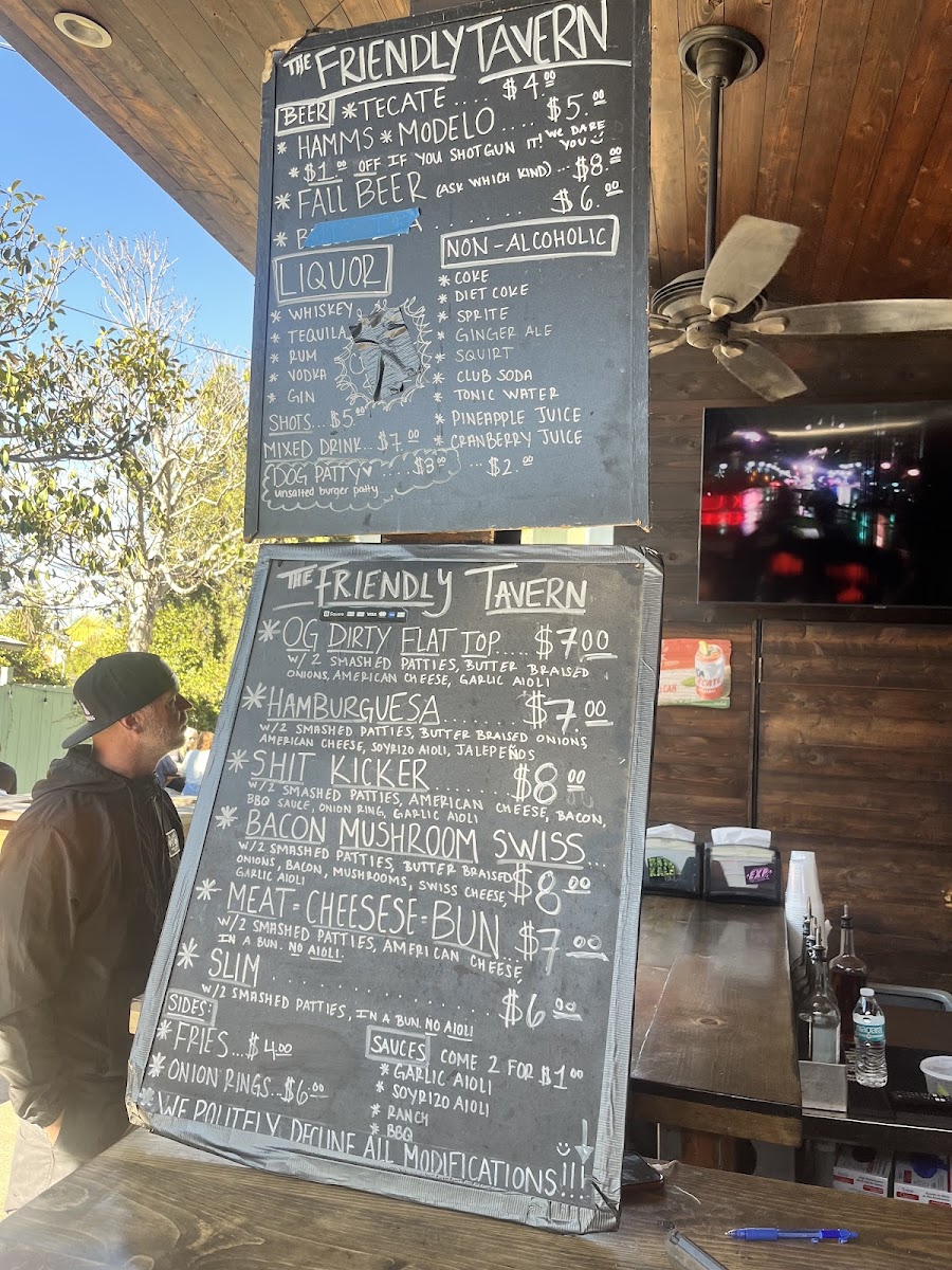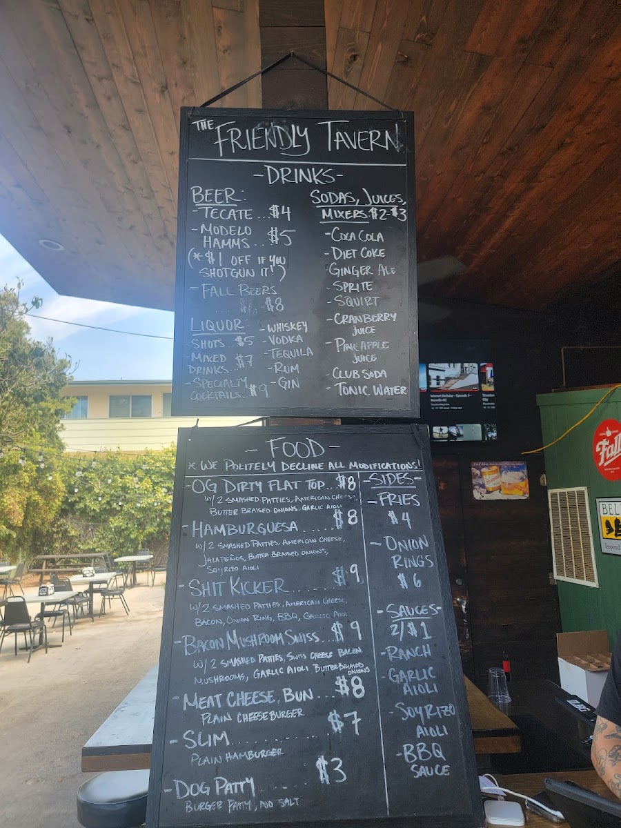 The menu is structured to accommodate casual dining occasions, with options suitable for lunch or dinner. It provides a straightforward selection focused primarily on burgers and accompanying sides, along with a diverse drinks list to pair with the food. This layout makes it convenient for visitors seeking a quick order or a relaxed meal experience.